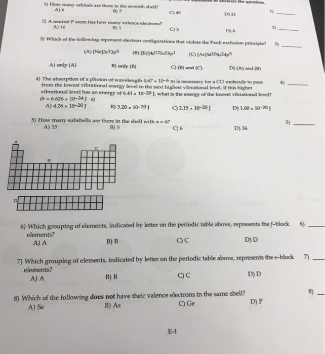 How many orbitals are there in the seventh shell. _____ 16 1 3 6 Which of the following represent electron configuration that violate the Pauli exclusion principle. Answer 1 of 4.